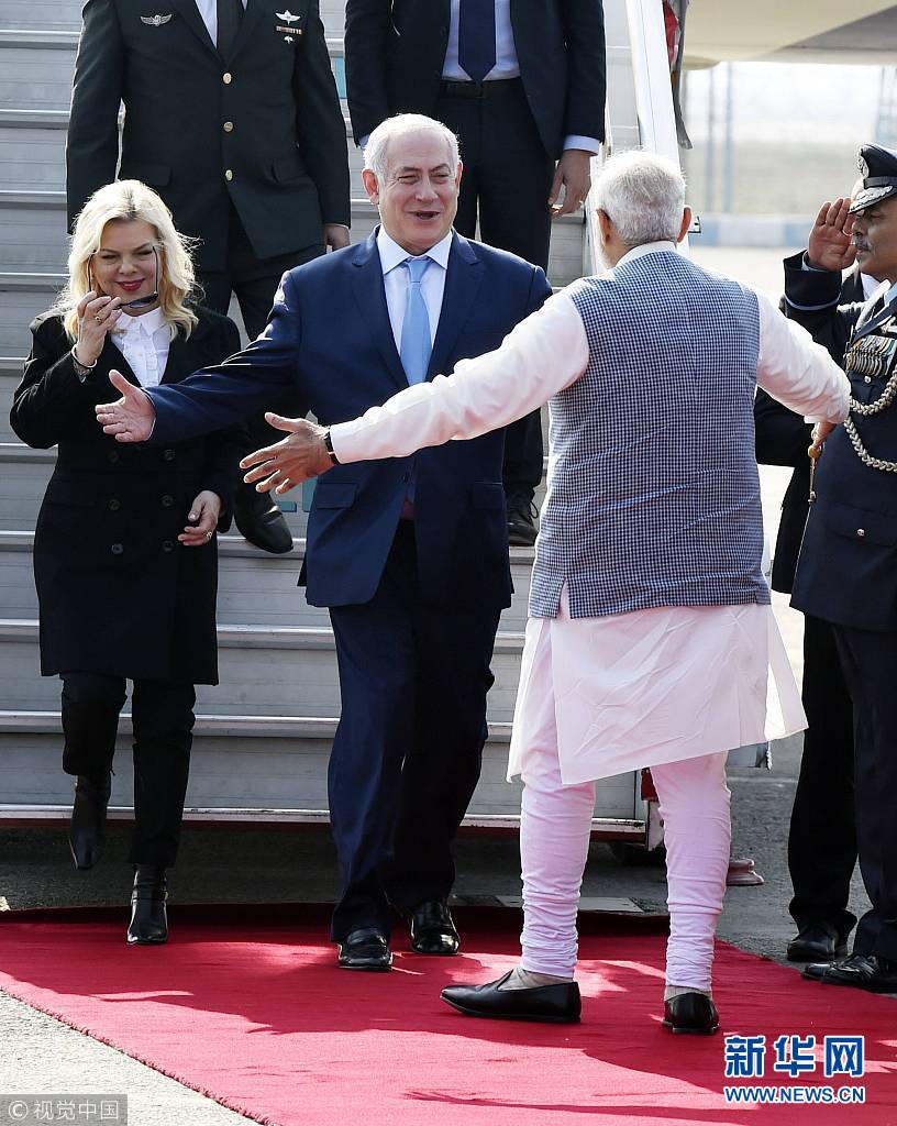 當(dāng)?shù)貢r(shí)間1月14日,印度新德里,以色列總理內(nèi)塔尼亞胡抵達(dá)印度展開訪問。(圖片來源:視覺中國)