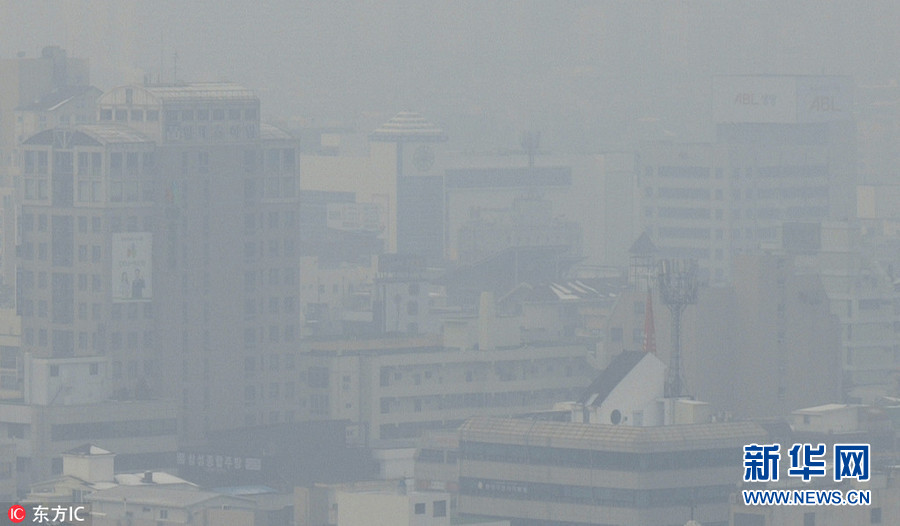 韓國多地出現(xiàn)重霧霾天氣 灰蒙一片能見度極低