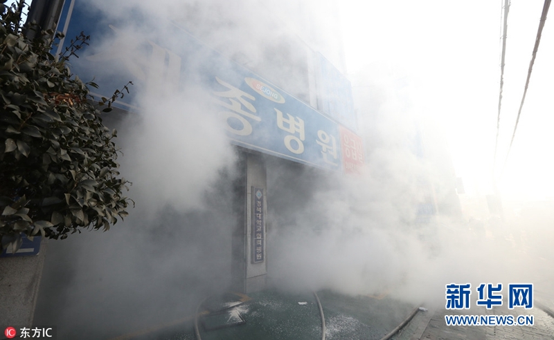 韓國慶尚南道密陽市一家醫(yī)院當(dāng)?shù)貢r(shí)間26日上午發(fā)生火災(zāi)。新華網(wǎng)發(fā)