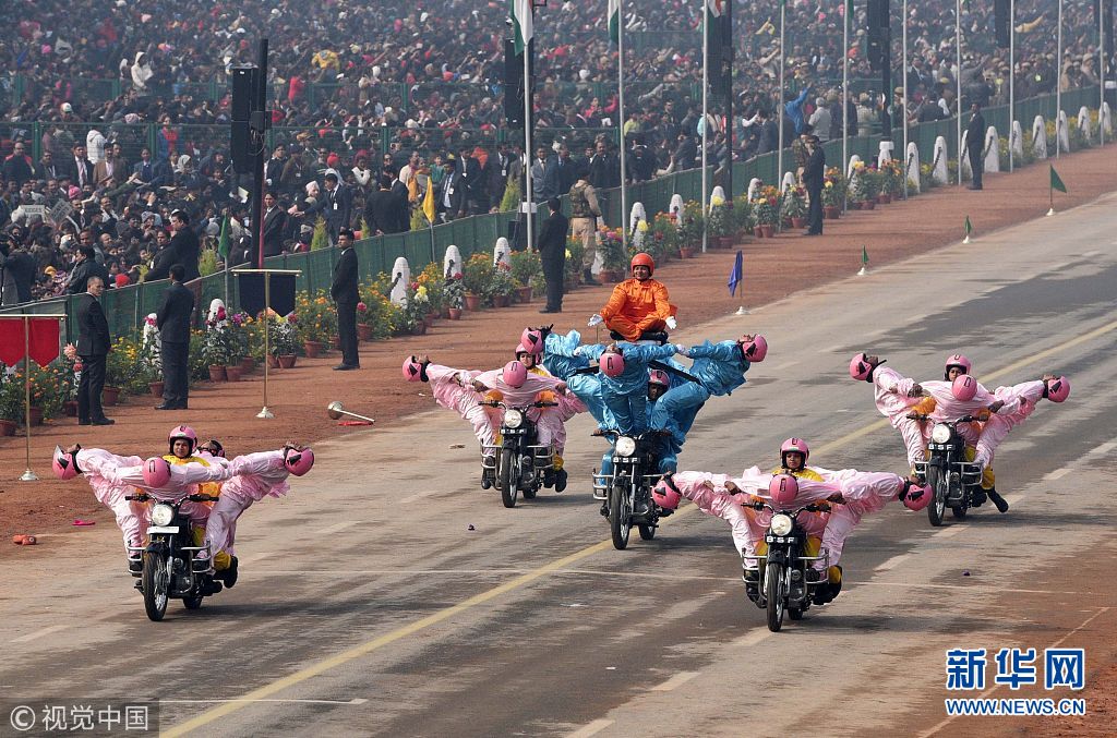 印度舉行閱兵游行慶祝第69個共和國日 摩托車隊再展“神技”