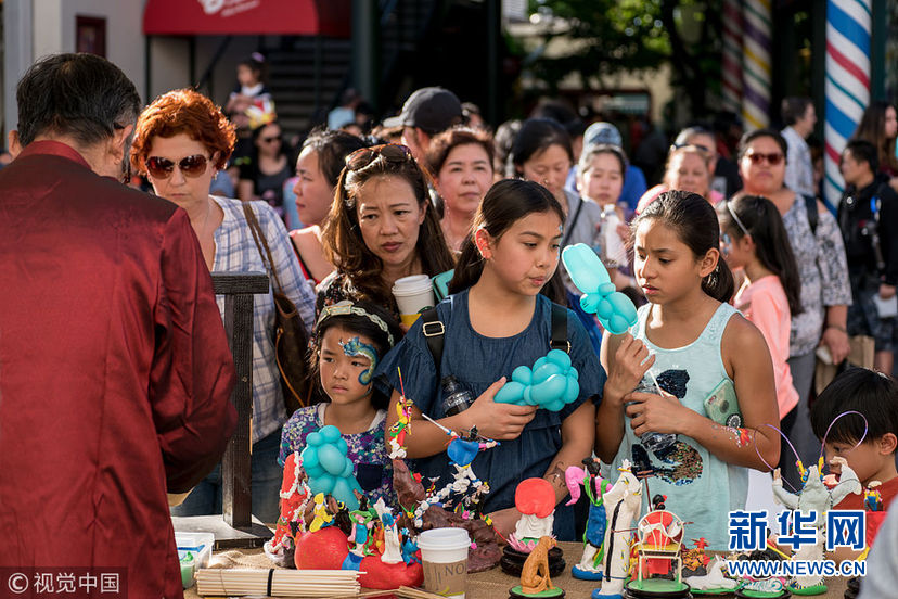 當?shù)貢r間1月28日,美國洛杉磯,當?shù)谿rove商場舉行少林武術表演以及其他中國文化類的演出,慶祝傳統(tǒng)新年,場外攤位還有傳統(tǒng)剪紙,捏面人,糖畫,彩繪等項目。圖為捏面人。(圖片來源:視覺中國)