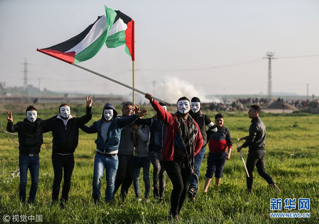 當(dāng)?shù)貢r間2月2日,加沙,巴勒斯坦示威者與以色列士兵發(fā)生沖突;一巴勒斯坦樂隊在沖突中開音樂會。(圖片來源:視覺中國)