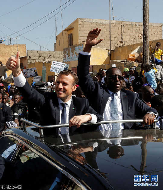 法總統(tǒng)馬克龍訪問塞內(nèi)加爾受眾人簇擁
