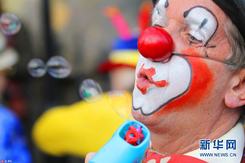 英國倫敦小丑歡聚一堂 紀(jì)念“小丑之父”