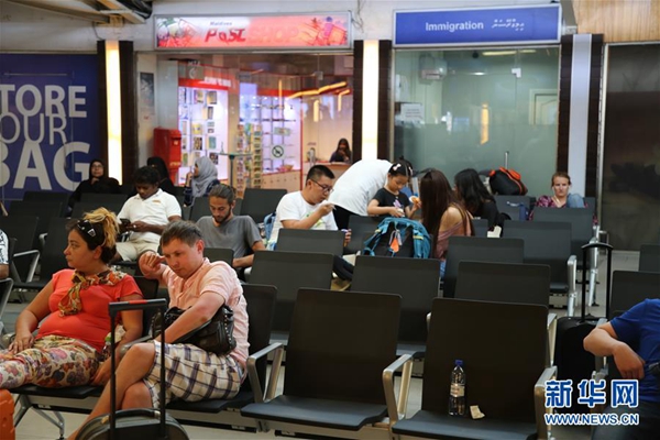 2月7日,在馬爾代夫馬累國(guó)際機(jī)場(chǎng),旅客坐在椅子上休息。新華社記者 朱瑞卿 攝