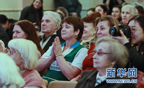基輔市敬老院的孤殘老人們興致勃勃地觀(guān)看孔院師生帶來(lái)的文藝節(jié)目。新華網(wǎng)發(fā)(陳俊鋒攝)