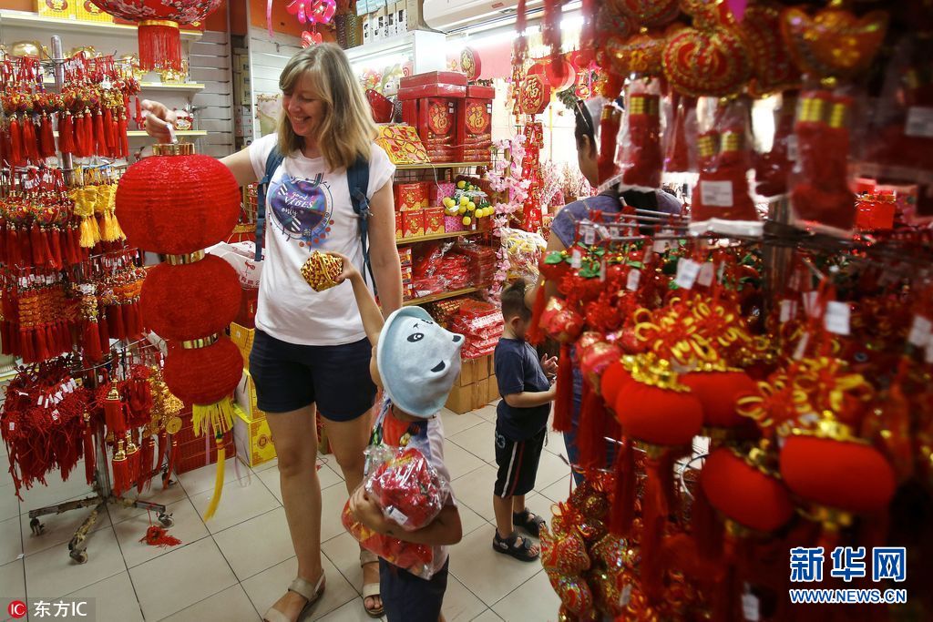 當?shù)貢r間2018年2月11日,馬來西亞吉隆坡,中國農(nóng)歷新年將至,當?shù)啬曦浭袌黾t火。(圖片來源:東方IC)