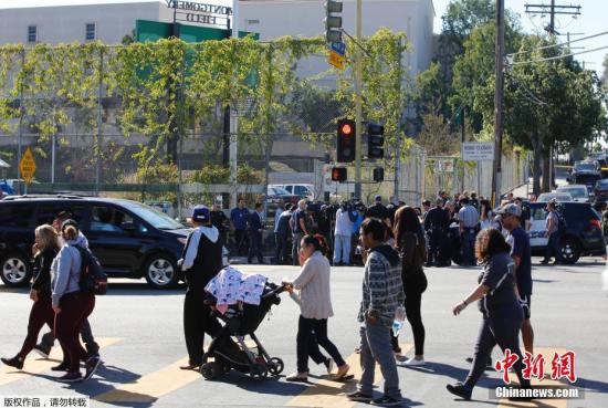 資料圖片:2月1日,美國(guó)洛杉磯市一所中學(xué)發(fā)生槍擊事件,一名據(jù)信年僅12歲的女孩在教室里開槍。
