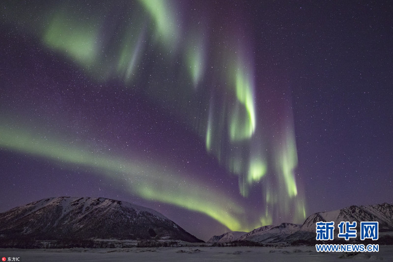 2月19日,英國(guó)攝影師拍攝下一組絕美的北極光照片。Paul Goldstein是一位來自英國(guó)溫布爾頓的導(dǎo)游,他領(lǐng)著18名“極光獵人”組成的團(tuán)隊(duì)在北極圈內(nèi)捕捉北極光,然后在挪威冰封的峽灣地區(qū)拍攝下這些令人驚嘆照片。畫面中,美麗的北極光如一條條綠色的條紋帶在夜空舞動(dòng),美得令人窒息。(圖片來源:東方IC)