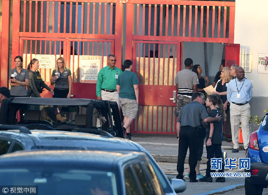 當(dāng)?shù)貢r間2月28日,美國佛羅里達州帕克蘭,發(fā)生槍擊案的道格拉斯中學(xué)復(fù)課,學(xué)生和教職工重返校園,大批警察出動維護治安。2月14日,一名19歲的槍手在學(xué)校里開槍,造成17人死亡。(圖片來源:視覺中國)