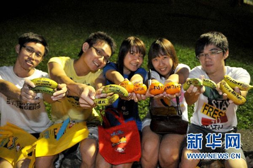 元宵之夜,華裔單身男女紛紛走出家門,涌向公園的河邊或湖邊,男的拋香蕉,女的拋柑橘,還在水果上寫上聯(lián)絡(luò)號(hào)碼,以期覓得一段好姻緣。