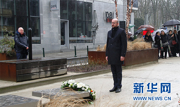 3月22日,比利時(shí)首相米歇爾在布魯塞爾舒曼廣場(chǎng)出席紀(jì)念活動(dòng)。新華社記者 潘革平 攝