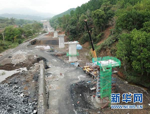 這是3月27日在老撾南塔省航拍的正在施工中的橋梁。新華網發(fā) 劉艾倫攝