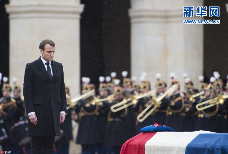 3月28日,法國巴黎,英勇殉職的法國憲兵中校貝爾特拉姆(Arnaud Beltrame)葬禮在法國榮軍院舉行。貝爾特拉姆在法國特雷布鎮(zhèn)恐怖襲擊事件中舍身替換人質(zhì)而殉職。法國前總統(tǒng)奧朗德、薩科齊等多名政要出席貝爾特拉姆的國葬。法國總統(tǒng)馬克龍為其授予法國榮譽軍團勛章。
