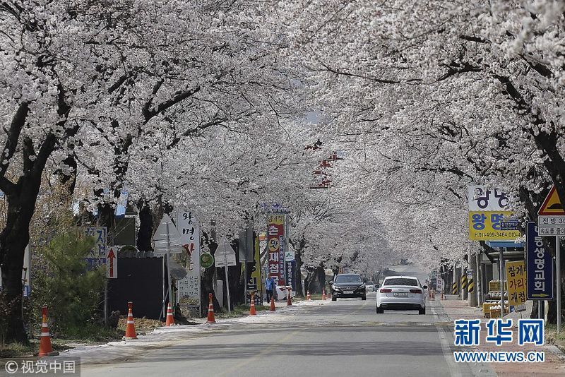 韓國(guó)櫻花盛放 吸引游客觀(guān)賞