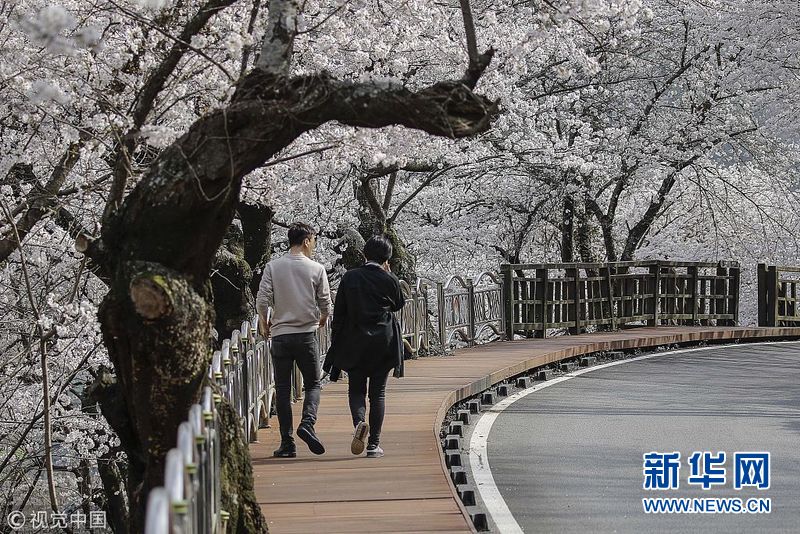 3月30日,韓國河?xùn)|郡,當(dāng)?shù)貦鸦ㄊ㈤_,吸引游人觀賞。(圖片來源:視覺中國)