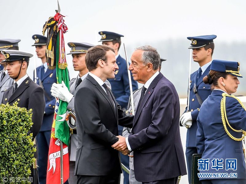 4月9日,法國(guó)里什堡,法國(guó)總統(tǒng)馬克龍和葡萄牙總統(tǒng)馬塞洛·雷貝洛·德索薩在一戰(zhàn)葡萄牙公墓出席一戰(zhàn)紀(jì)念儀式,紀(jì)念利斯戰(zhàn)役百年。(圖片來(lái)源:視覺(jué)中國(guó))