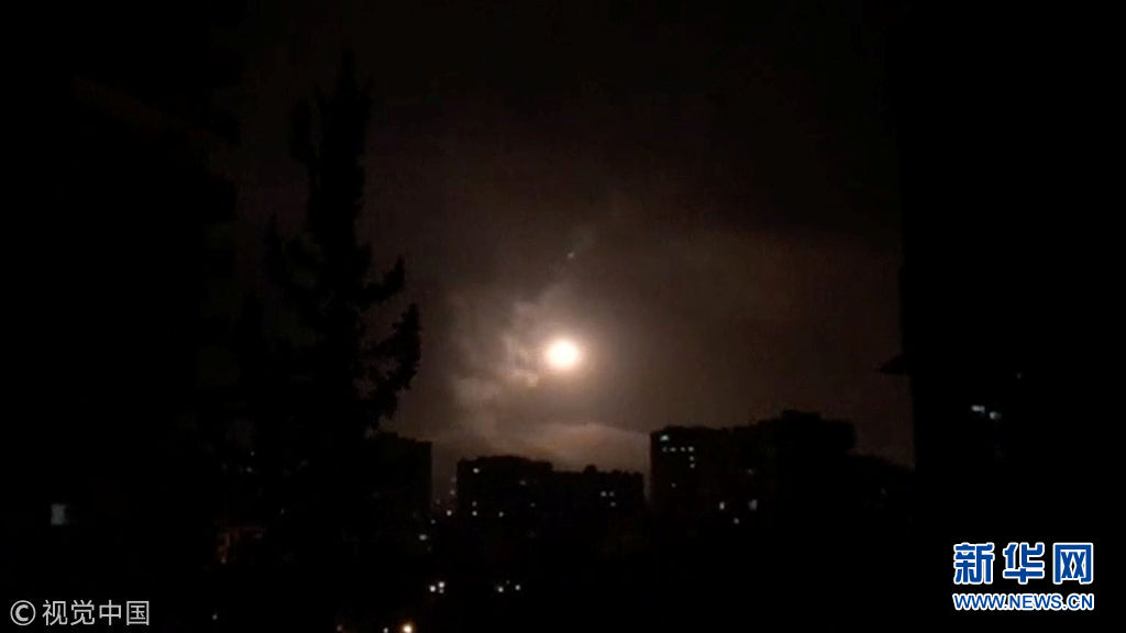 4月14日,敘利亞大馬士革,特朗普決定聯(lián)合英國(guó)和法國(guó)對(duì)敘利亞進(jìn)行精確打擊,大馬士革傳出爆炸聲,敘利亞方面進(jìn)行反擊。敘利亞阿拉伯?dāng)⒗麃喭ㄓ嵣?SANA)報(bào)道,敘政府軍在大馬士革以南地區(qū)擊落13枚導(dǎo)彈。敘利亞國(guó)家電視臺(tái)此前稱(chēng)美英法三國(guó)對(duì)敘利亞“發(fā)動(dòng)了侵略”。(圖片來(lái)源:視覺(jué)中國(guó))
