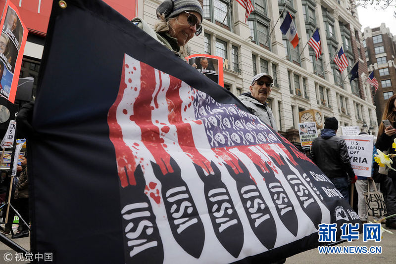 美國(guó)民眾舉行反戰(zhàn)游行 抗議美英法聯(lián)軍襲擊敘利亞