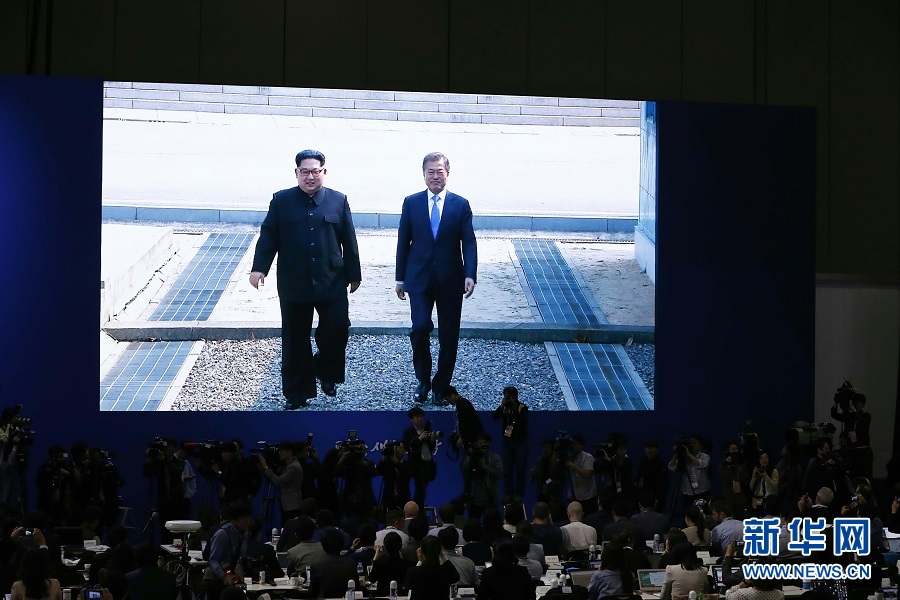 新華社快訊:朝鮮最高領(lǐng)導(dǎo)人金正恩27日上午在板門店跨過軍事分界線,與韓國總統(tǒng)文在寅會晤。