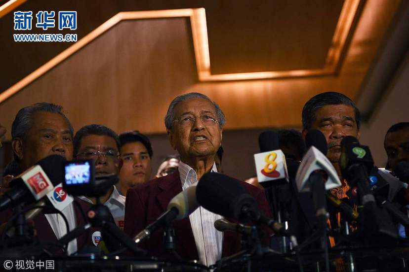 當(dāng)?shù)貢r(shí)間2018年5月9日,馬來西亞吉隆坡,馬哈蒂爾代表希望聯(lián)盟召開新聞發(fā)布會。9日,馬來西亞國會大選結(jié)束。10日凌晨官方點(diǎn)票結(jié)果顯示,前總理馬哈蒂爾(Mahathir)帶領(lǐng)的希望聯(lián)盟取得112席簡單多數(shù)國會議席,足以籌組政府及勝出大選,并終結(jié)執(zhí)政國民陣線長達(dá)60年的管治?,F(xiàn)總理納吉布領(lǐng)導(dǎo)的國民陣線僅獲得76席。(圖片來源:視覺中國)
