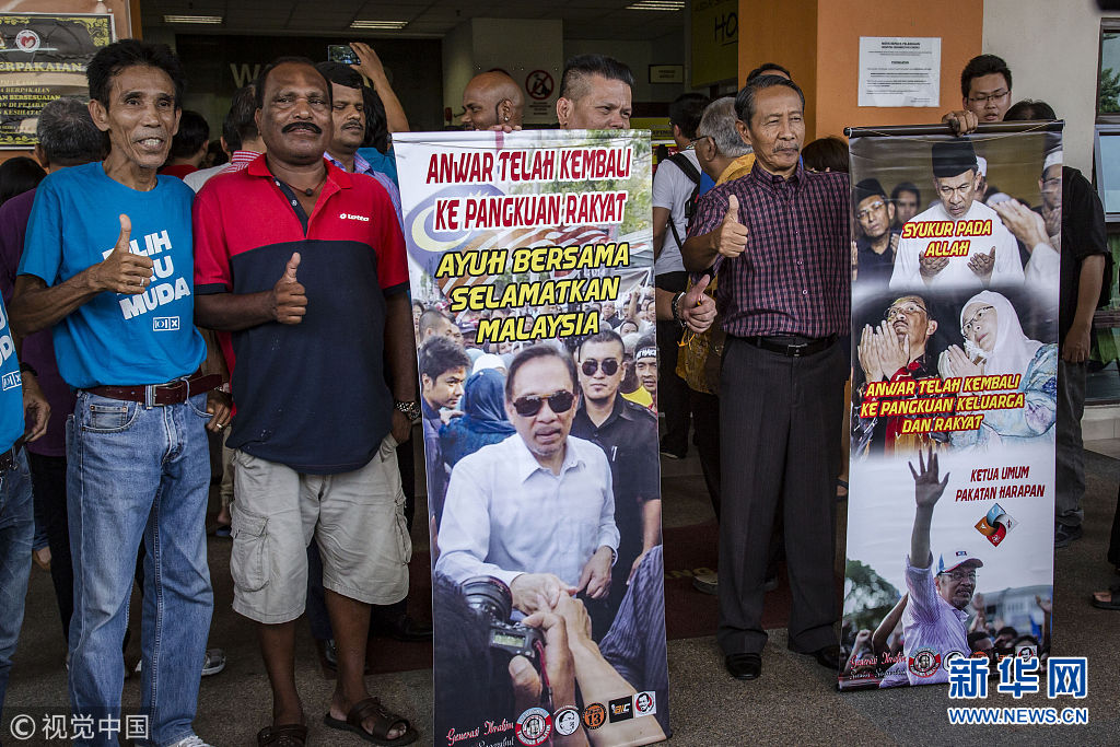 2018年5月11日訊,馬來西亞新當選總理馬哈蒂爾表示,最高元首已經(jīng)同意特赦前副總理安瓦爾,希盟方面將盡快推動有關(guān)程序。安瓦爾以前頗受馬哈蒂爾賞識和提攜,被外界視為馬哈蒂爾的接班人。然而,兩人后來鬧僵,馬哈蒂爾1998年革除安瓦爾的副總理之職。隨后幾年間,安瓦爾因貪腐和雞奸罪名入獄。路透社報道,根據(jù)馬哈蒂爾與安瓦爾“談妥”的條件,馬哈蒂爾贏得選舉后將向最高元首尋求特赦安瓦爾,待安瓦爾出獄后,便退位讓賢,改由安瓦爾出任總理。不過,馬來西亞法律規(guī)定出獄者5年內(nèi)不得參政,即便獲特赦也要參加國會議席補選才有望重返政壇。(圖片來源:視覺中國)
