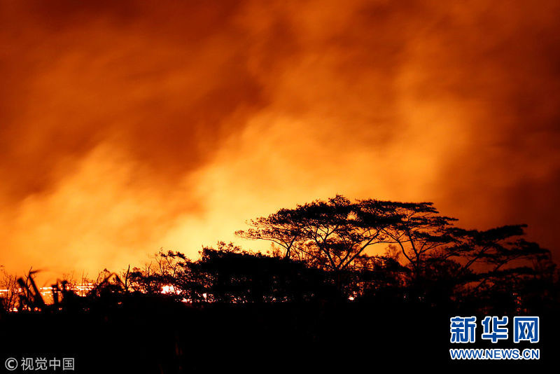 夏威夷火山持續(xù)噴發(fā) 熔巖噴涌火星四濺