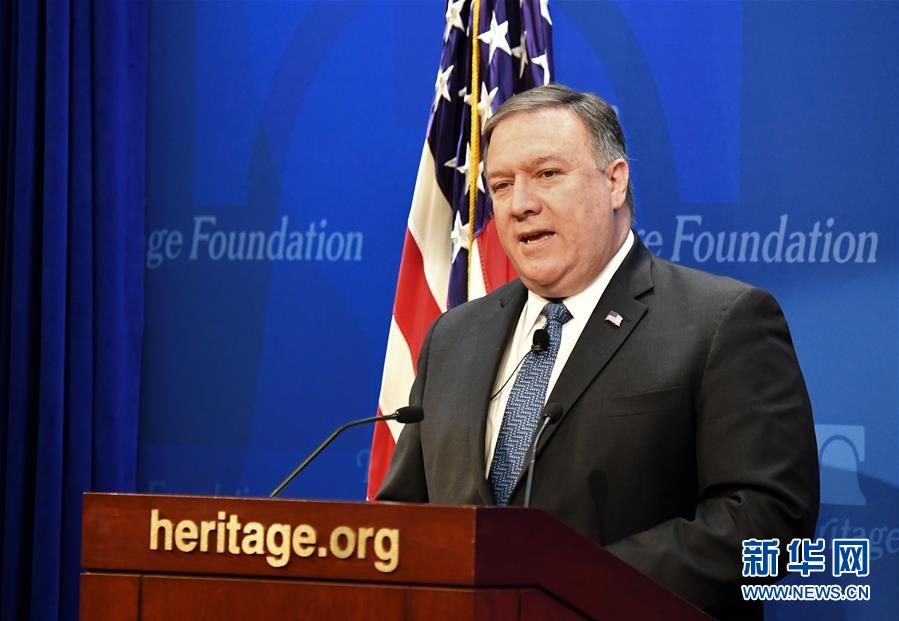 5月21日,美國國務(wù)卿蓬佩奧在華盛頓的美國智庫傳統(tǒng)基金會發(fā)表演講。美國國務(wù)卿蓬佩奧當日表示,伊朗如果不改變當前路線,將受到美國“最嚴厲的制裁”。 新華社記者楊承霖攝