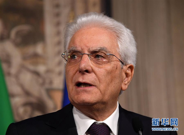 5月27日,在意大利首都羅馬,意總統(tǒng)馬塔雷拉出席新聞發(fā)布會。據(jù)當(dāng)?shù)孛襟w報道,意大利新任總理孔特27日晚間與總統(tǒng)馬塔雷拉會面并提交擬定的內(nèi)閣成員名單時,馬塔雷拉否決了由意大利聯(lián)盟黨和五星運動力推的持疑歐立場的經(jīng)濟學(xué)家保羅·薩沃納出任財政部長。孔特向總統(tǒng)提出放棄組閣任務(wù)請求,請求得到總統(tǒng)確認。新華社發(fā)(阿爾貝托·林格里亞攝)