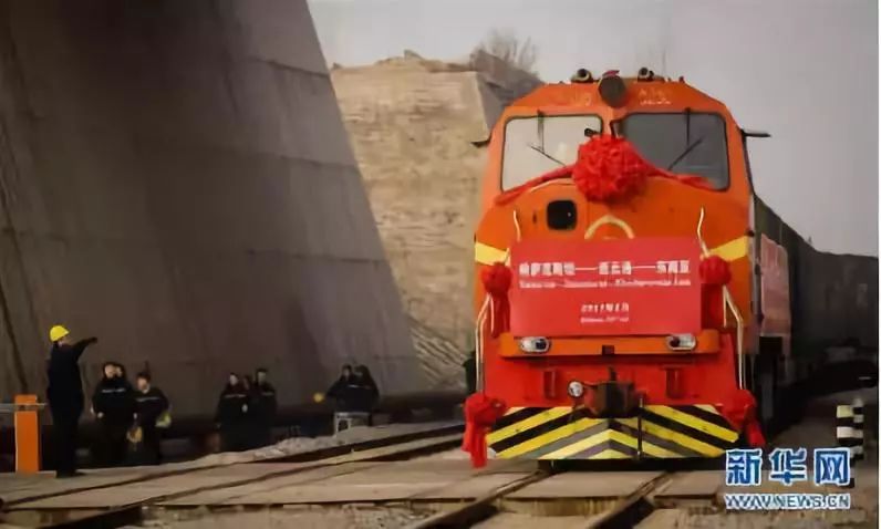 2017年2月5日,一輛哈薩克斯坦火車駛?cè)胫泄B云港物流中轉(zhuǎn)基地。新華社記者 李響 攝