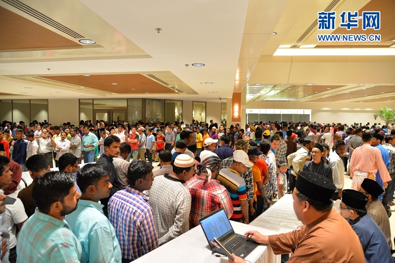 圖為16日在文萊王宮努洛伊曼宮拍攝的擁擠的人群。新華網(wǎng)發(fā) 杰弗里·黃攝
