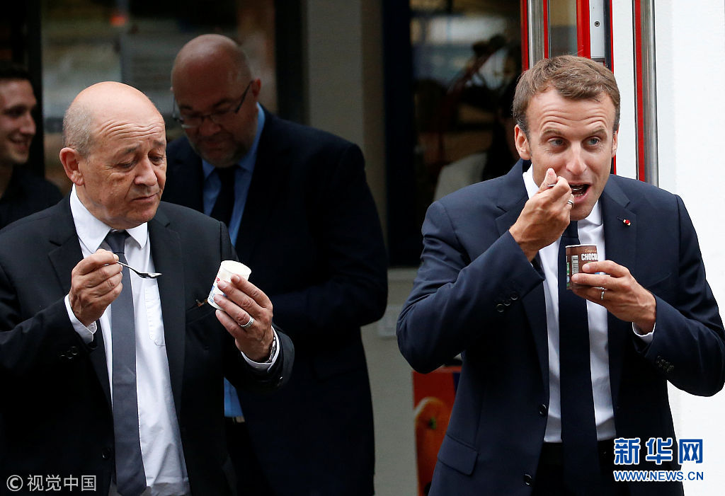 法國總統(tǒng)馬克龍變身“吃貨” 視察工廠不忘品嘗甜點(diǎn)