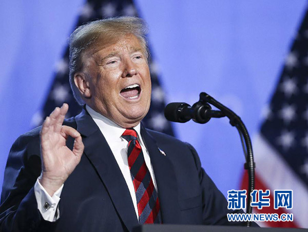 7月12日,在比利時(shí)布魯塞爾的北約總部,美國(guó)總統(tǒng)特朗普召開(kāi)新聞發(fā)布會(huì)。新華社記者 葉平凡 攝