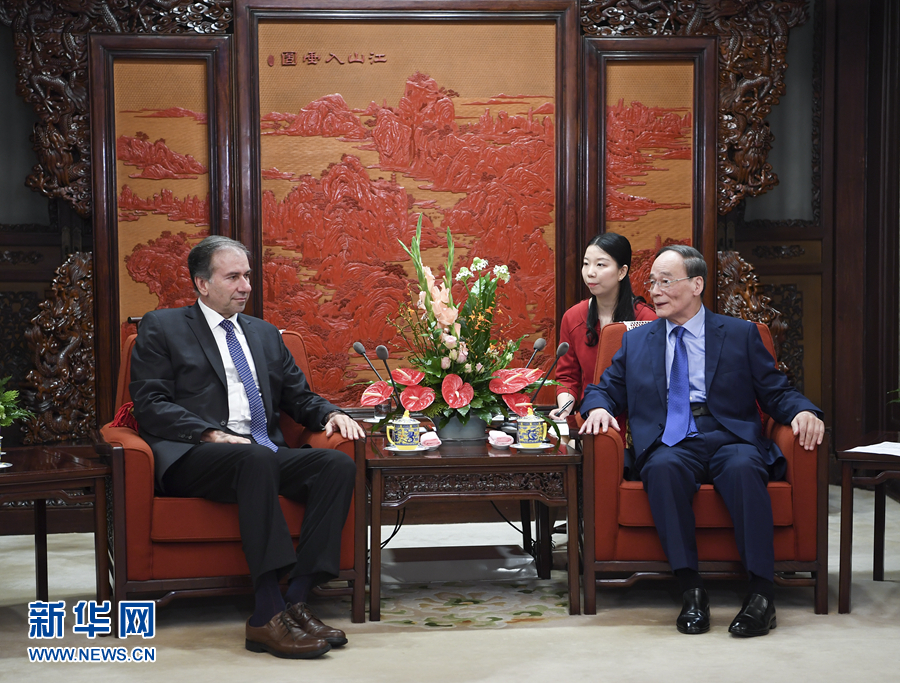 7月16日,國家副主席王岐山在北京中南海會見由黨主席斯齊亞沃尼率領的阿根廷共和國方案黨干部考察團。 新華社記者 張領 攝