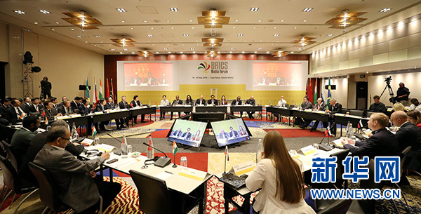 本屆金磚國家媒體高端論壇由新華通訊社和獨(dú)立傳媒集團(tuán)共同舉辦。來自巴西、俄羅斯、印度、中國和南非金磚五國以及非洲國家的48家主流媒體負(fù)責(zé)人出席論壇。
