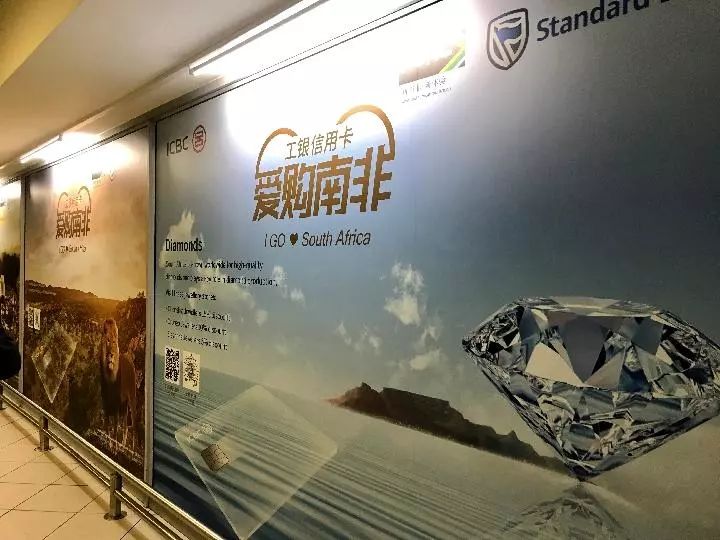 約翰內(nèi)斯堡奧利弗·坦博國際機場內(nèi),中國工商銀行和南非標準銀行聯(lián)合推出的中英雙語廣告非常醒目。