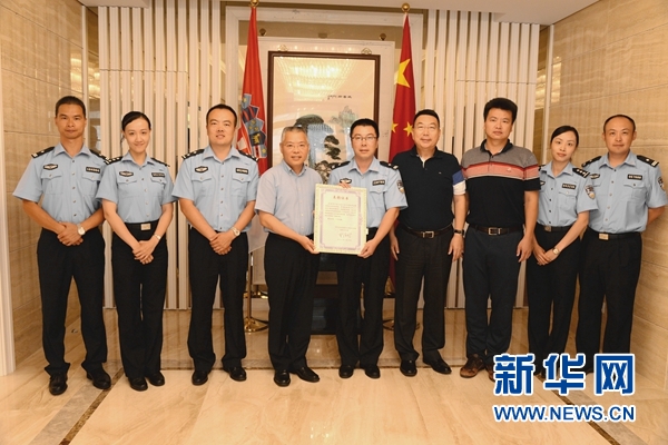 8月14日,中國駐克羅地亞大使胡兆明(左四)在薩格勒布為圓滿完成首次中克警務(wù)聯(lián)巡的中國警察頒發(fā)表彰證書。6名中國警察15日從克羅地亞首都薩格勒布啟程回國,為期一個(gè)月的中國與克羅地亞首次旅游季警務(wù)聯(lián)合巡邏圓滿結(jié)束。新華網(wǎng)發(fā) 高磊攝