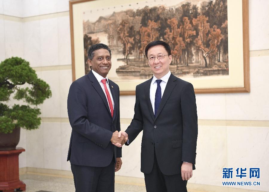 9月1日,國務院副總理韓正在北京釣魚臺國賓館會見塞舌爾總統(tǒng)富爾。 新華社記者 燕雁 攝