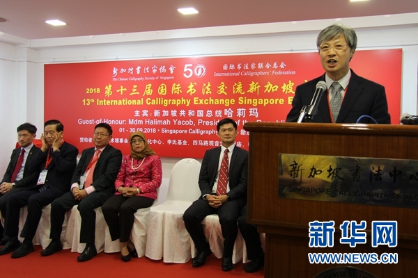 國際書法家聯(lián)合總會秘書長陳洪武在致辭時說,新加坡書法家協(xié)會是新加坡最早的全國性書法組織,也是國際書法家聯(lián)合總會的發(fā)起者和首創(chuàng)者之一。
