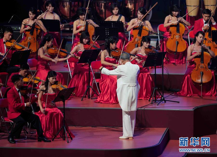 9月8日,演員在表演節(jié)目。當(dāng)日,朝鮮在平壤體育館舉行國(guó)慶文藝演出。 新華社記者 邢廣利 攝