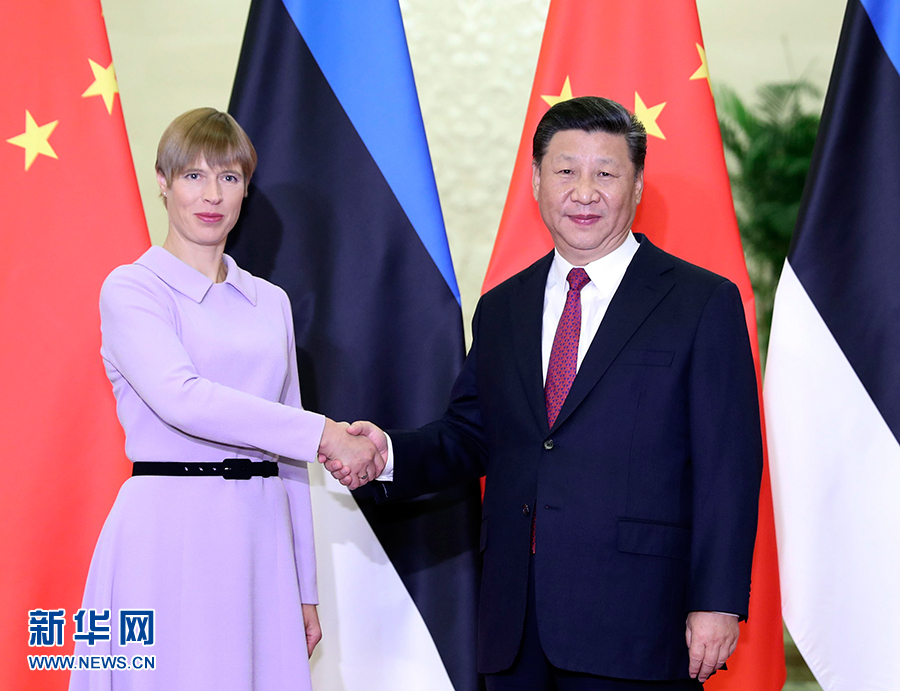 9月18日,國家主席習(xí)近平在北京人民大會堂會見來華出席夏季達沃斯論壇的愛沙尼亞總統(tǒng)卡柳萊德。 新華社記者丁林攝