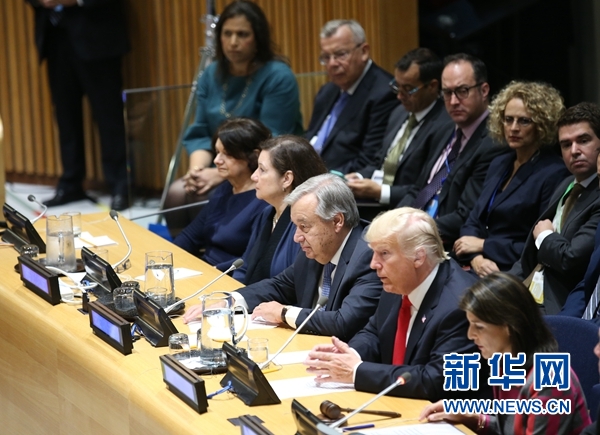 9月24日,在紐約聯(lián)合國總部,聯(lián)合國秘書長古特雷斯(前排右三)出席“呼吁全球采取行動(dòng)應(yīng)對(duì)世界毒品問題”高級(jí)別會(huì)議。新華社記者秦朗攝