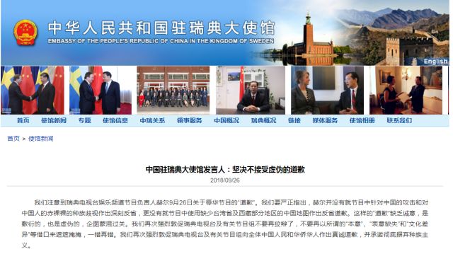 我們注意到瑞典電視臺(tái)娛樂頻道節(jié)目負(fù)責(zé)人赫爾9月26日關(guān)于辱華節(jié)目的“道歉”。我們要嚴(yán)正指出,赫爾并沒有就節(jié)目中針對(duì)中國(guó)的攻擊和對(duì)中國(guó)人的赤裸裸的種族歧視作出深刻反省,更沒有就節(jié)目中使用缺少臺(tái)灣省及西藏部分地區(qū)的中國(guó)地圖作出反省道歉。這樣的“道歉”缺乏誠(chéng)意,是敷衍的,也是虛偽的,企圖蒙混過(guò)關(guān)。我們?cè)俅螐?qiáng)烈敦促瑞典電視臺(tái)及有關(guān)節(jié)目組不要再狡辯了,不要再以所謂的“本意”、“表意缺失”和“文化差異”等借口來(lái)遮遮掩掩,一錯(cuò)再錯(cuò)。我們?cè)俅螐?qiáng)烈敦促瑞典電視臺(tái)及有關(guān)節(jié)目組向全體中國(guó)人民和華僑華人作出真誠(chéng)道歉,并承諾徹底摒棄種族主義。