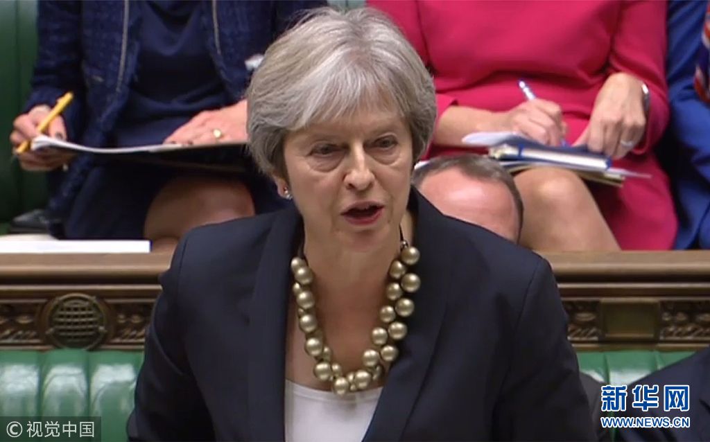 當(dāng)?shù)貢r間2018年10月22日,英國倫敦,英國首相特雷莎·梅在下議院向國會議員發(fā)表聲明,尋求脫歐戰(zhàn)略支持。特雷莎·梅稱盡管她再次拒絕了歐盟關(guān)于愛爾蘭邊界問題的提議,但堅信與歐盟的脫歐協(xié)議談判已經(jīng)接近尾聲。(視頻截圖)(圖片來源:視覺中國)