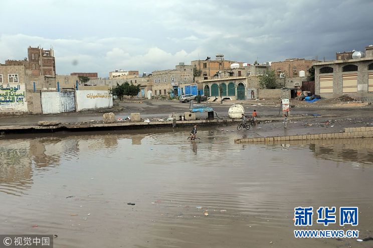 當(dāng)?shù)貢r(shí)間2018年10月23日,也門薩那,連日暴雨導(dǎo)致街道積水嚴(yán)重。(圖片來源:視覺中國)