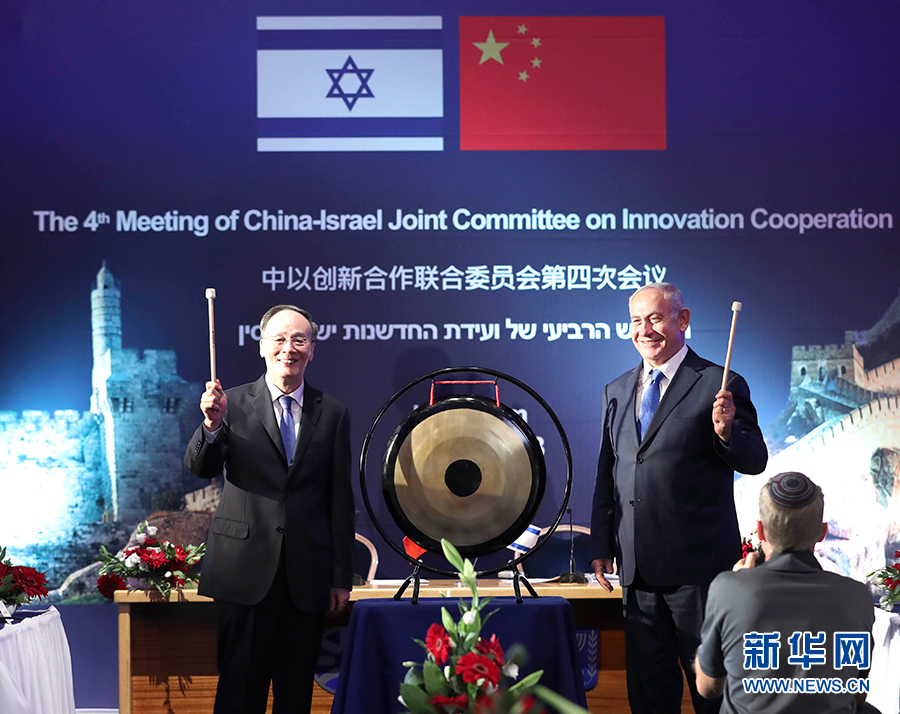 王岐山與內(nèi)塔尼亞胡共同主持召開中以創(chuàng)新合作聯(lián)委會(huì)第四次會(huì)議。王岐山表示,中以創(chuàng)新合作理念契合、優(yōu)勢(shì)互補(bǔ)、潛力巨大、前景廣闊。近年來,兩國(guó)在基礎(chǔ)科學(xué)、現(xiàn)代農(nóng)業(yè)、健康醫(yī)療、能源等領(lǐng)域的合作成果豐碩。創(chuàng)新永遠(yuǎn)在路上,創(chuàng)新合作機(jī)制也永遠(yuǎn)在路上。希望中以雙方深入總結(jié)以往合作的成績(jī)和經(jīng)驗(yàn),規(guī)劃未來合作的方向和路徑,進(jìn)一步擴(kuò)大交流往來,營(yíng)造有利環(huán)境,在不斷發(fā)現(xiàn)問題、解決問題中,改進(jìn)完善聯(lián)委會(huì)機(jī)制,推動(dòng)兩國(guó)創(chuàng)新合作取得更多成果。內(nèi)塔尼亞胡表示,以色列和中國(guó)都是富有創(chuàng)新精神的國(guó)家,兩國(guó)應(yīng)在已經(jīng)取得的合作成果基礎(chǔ)上,開辟新領(lǐng)域,執(zhí)行新項(xiàng)目,推動(dòng)兩國(guó)創(chuàng)新合作更好地造福兩國(guó)人民。會(huì)議聽取了兩國(guó)有關(guān)部門對(duì)過去三年雙方在科技、經(jīng)貿(mào)、農(nóng)業(yè)、衛(wèi)生、交通等領(lǐng)域合作進(jìn)展情況的報(bào)告和對(duì)下一階段各領(lǐng)域合作的設(shè)想和建議。王岐山和內(nèi)塔尼亞胡共同簽署《中以創(chuàng)新合作行動(dòng)計(jì)劃(2018-2021)》,并見證了其他7份中以合作文件的簽署。