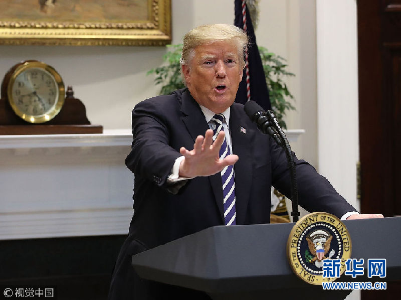當(dāng)?shù)貢r(shí)間2018年11月1日,美國(guó)華盛頓,美國(guó)總統(tǒng)特朗普在白宮羅斯福廳就移民和邊境安全問題發(fā)表講話。(圖片來源:視覺中國(guó))