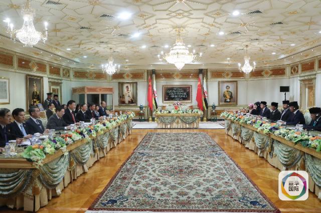 11月19日,國家主席習近平在斯里巴加灣同文萊蘇丹哈桑納爾舉行會談。新華社記者 鞠鵬 攝