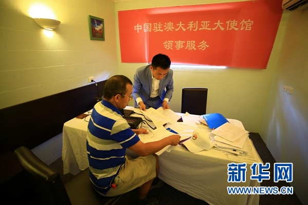 ?。玻橙?,中國駐澳大利亞使館的五名官員從首都堪培拉來到4000公里以外位于澳大利亞北部的港口城市達爾文,就領事保護和教育等方面的問題同當?shù)亓魧W生和華僑華人進行交流并現(xiàn)場辦公。