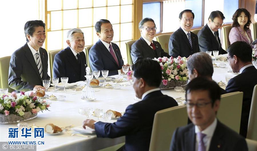 當(dāng)?shù)貢r(shí)間2018年12月17日,日本東京,日本明仁天皇在皇宮與日本首相安倍晉三領(lǐng)導(dǎo)的政府高官共進(jìn)年終午餐。(圖片來源:視覺中國(guó))